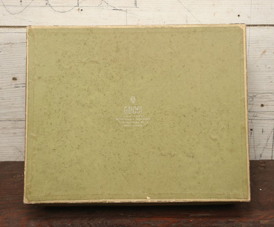 × CLOSESold outLot 043 - Vintage Empty Green Gucci Product Box, With Metallic Silver Lettering, Cover