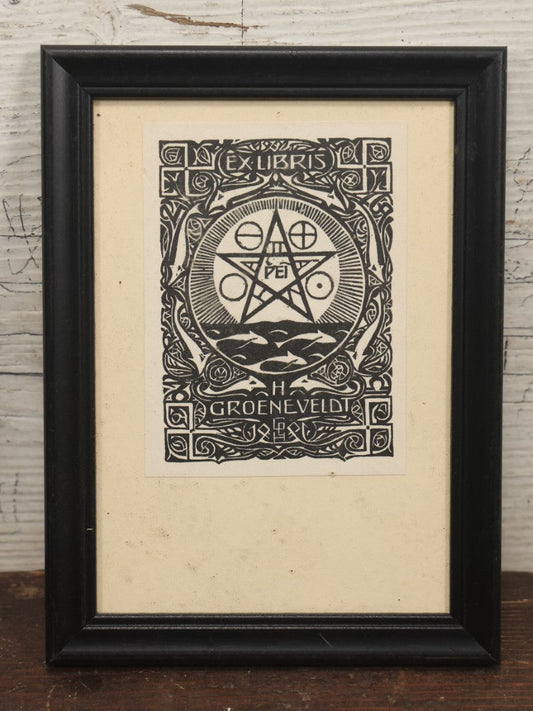 × CLOSESold outLot 047 - Vintage Framed Ex Libris Bookplate With Pentagram, H. Groeneveldt