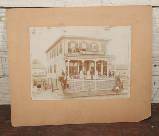 Sold For: Login to See Price Confirm BidLot 063 - Antique Boarded Photograph Of Wisconsin House, Possible Inn, With Many Men, Women, An[...]