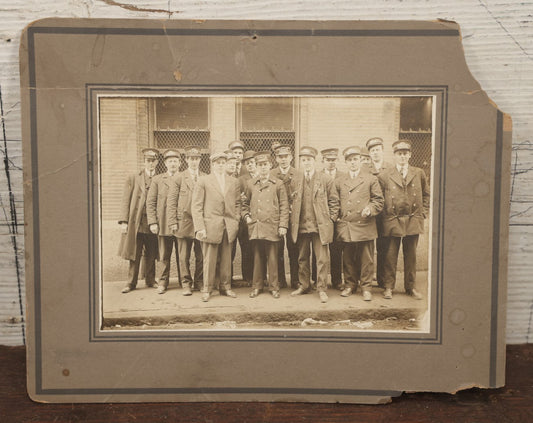 × CLOSESold outLot 064 - Antique Boarded Occupational Group Photograph, Men In Uniform, Train Conductors, Note Losses To Board