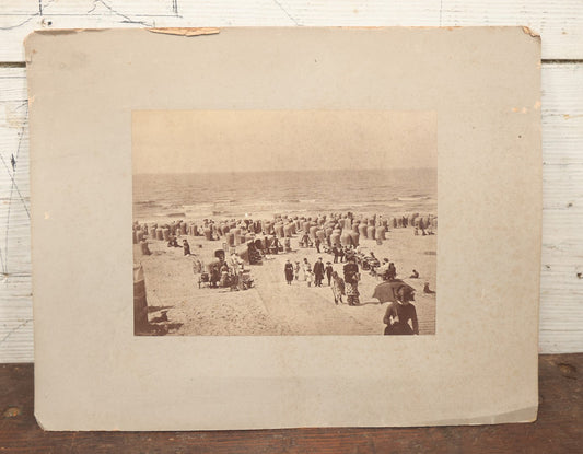 × CLOSESold outLot 069 - Antique Boarded Photograph Of Victorian Beach Goers, Beach Covered In Private Tents, Scheveningen Beach, The Netherlands