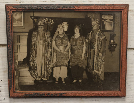 × CLOSESold outLot 080 - Vintage Framed Photograph Of Two Men And Two Women In Exotic Costumes, Likely Part Of A Fraternal Gathering Or Party, Label From Holyoke, Massachusetts