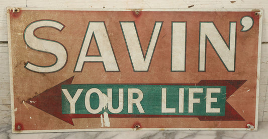 × CLOSESold outLot 036 - Vintage Novelty Sign, "Savin' Your Life" With Arrow, 24" x 12"