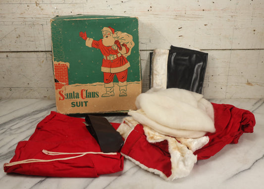 × CLOSESold outLot 038 - Vintage Santa Claus Costume In Original Box, Size Medium, By Collegeville Flag & Manufacturing Company, Collegeville, Pennsylvania, Note Box Wear, Various Staining, Appears Complete.