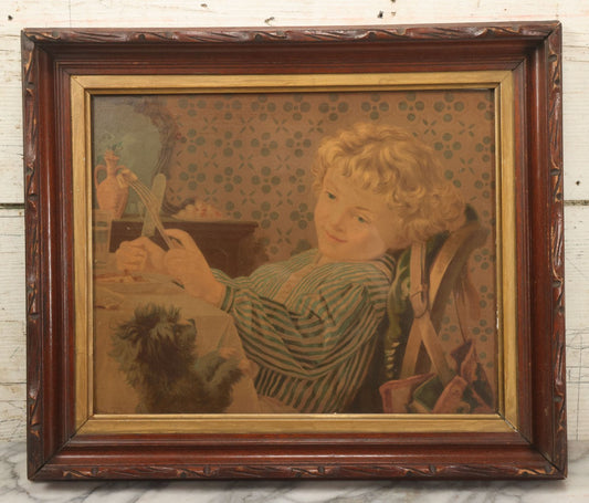 × CLOSESold outLot 043 - Antique Chromolithograph Of Dog Begging Child At Dinner Table, Circa 1873, Presented To Subscribers To The Christian Union, Lithographed By Dupuy Of Paris, In Frame, 17-1/2" x 14-3/4"