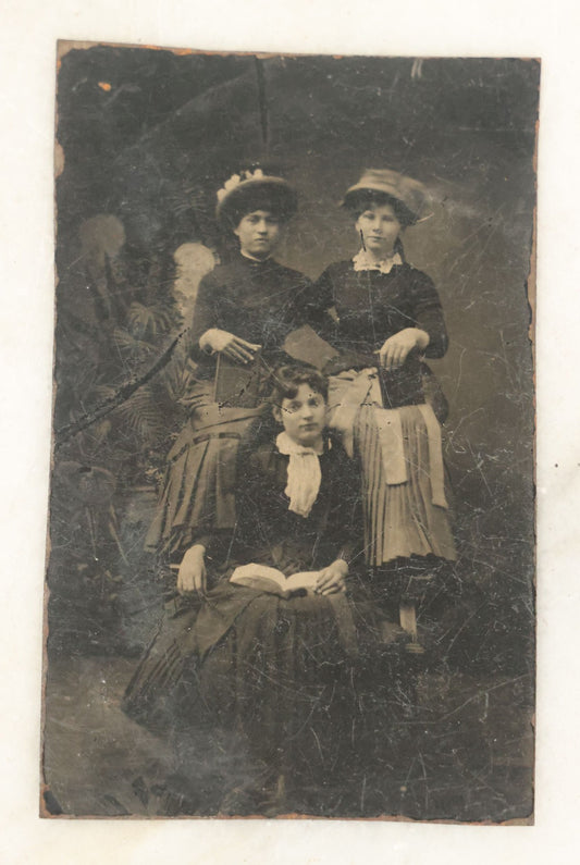 × CLOSESold outLot 058 - Single Antique Tintype Photograph, Three Women, All Holding Books