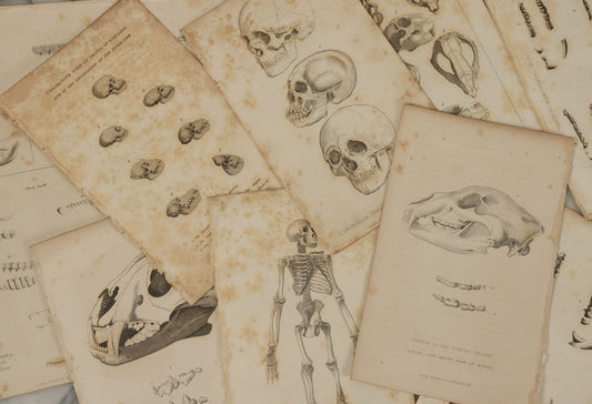 × CLOSESold outLot 065 - Grouping Of 21 Antique Engravings Of Bones, Skeletons Horns, Including Human Skull, Chimpanzee, Circa 1827