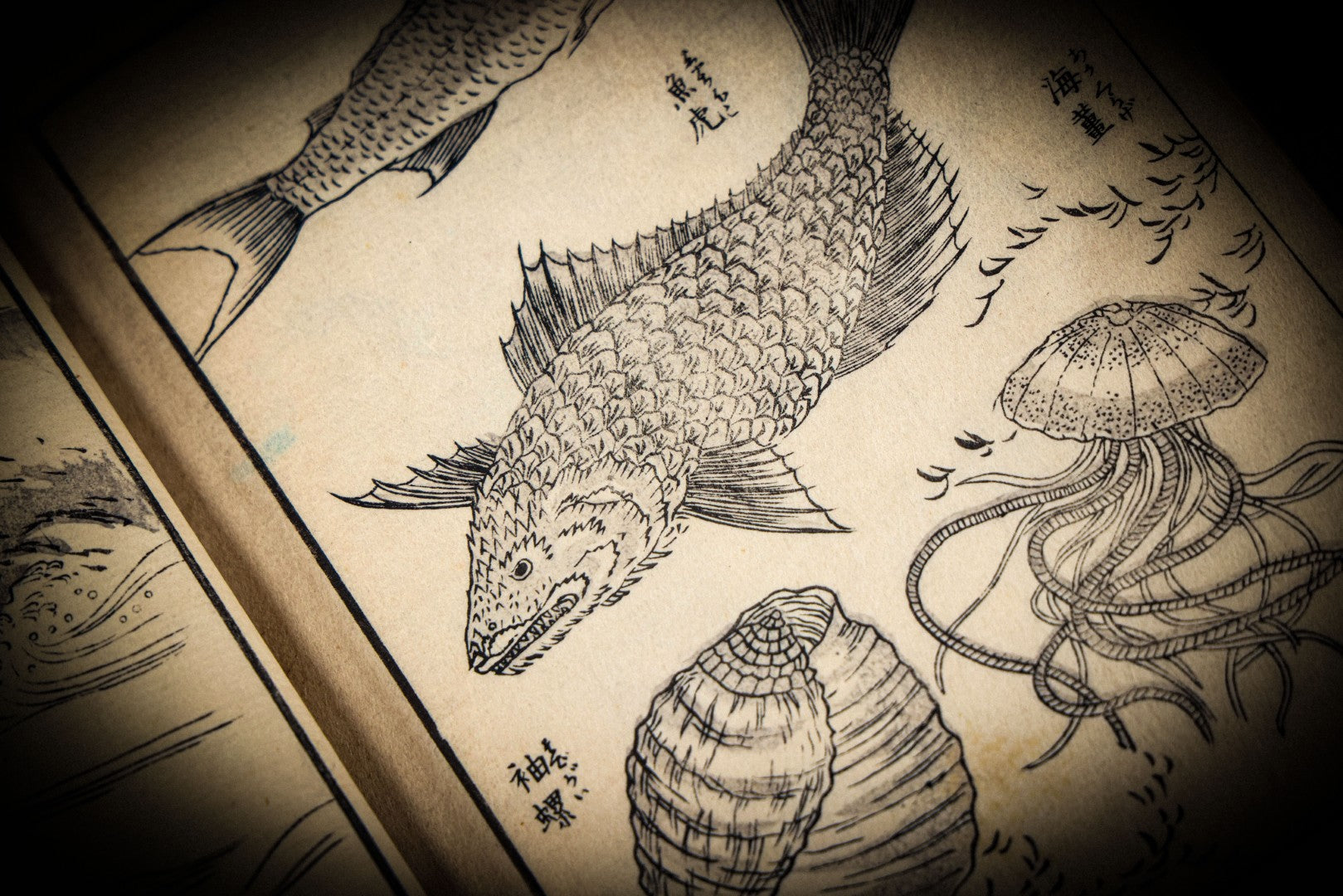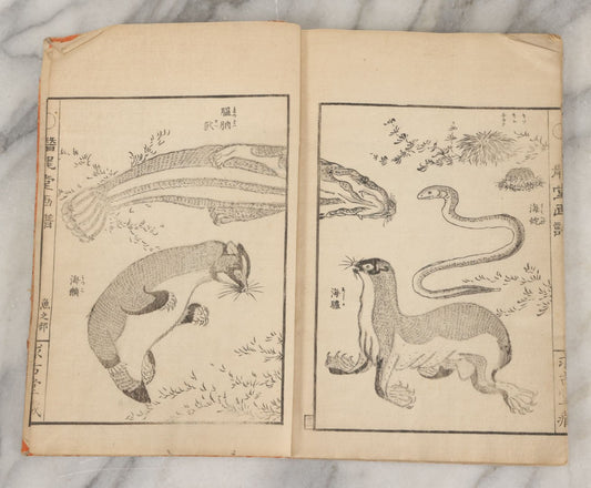 Lot 003 - Antique Japanese Meiji-Era Senryūdō Gafu Picture Manual Illustrated Album Of Fish And Sea Life, Ryutaku Kiyoshi Artist Or Compiler, Jikken-Dana, Edo/Tokyo, With Paper Cover, Hand Strung Binding, Circa 1880