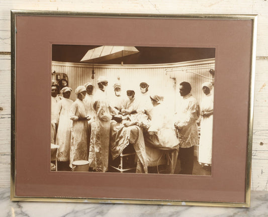 Lot 012 - Vintage Photo Reproduction Of Surgeons At Work, New Haven Hospital Operating Room, Original Photo Circa 1908 By T.S. Bronson, Reproduced By Sandler Collection Inc. For The New Haven Colony Historical Society, Connecticut, In Modern Metal Frame