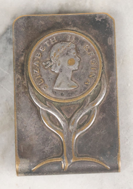Lot 037 - Vintage Art Nouveau Money Clip With Elizabeth II Regina Coin, Manufactured By Balfur