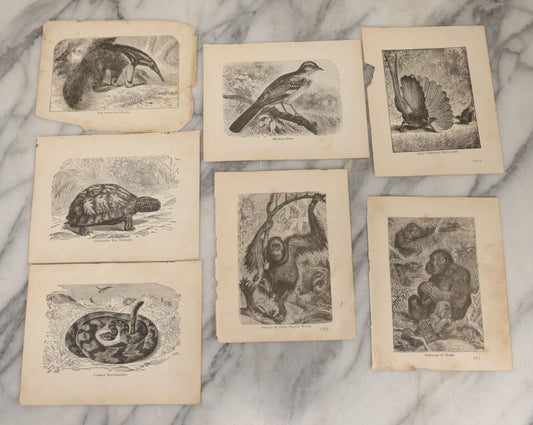 Lot 045 - Grouping Of Seven Late 19th Century Natural History Animal Engraving Book Plates Including Primates, Reptiles, Birds, And Mammals