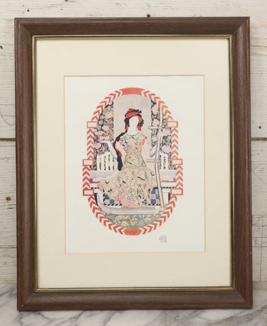 Lot 054 - Antique Magazine Print Of A Design For An Embroidered Chair Back Depicting Mother Time By R. Anning Bell, From The May 1913 Issue Of "The International Studio" Magazine, In Vintage Frame, 12-1/2" x 15-1/2"