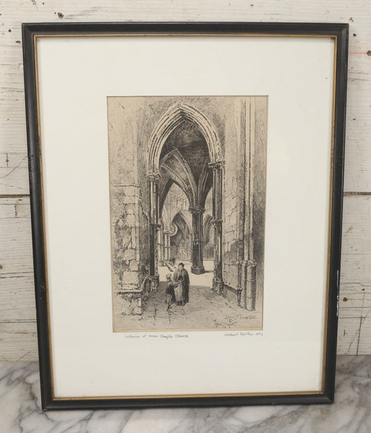 Lot 056 - Antique Etching Of The Interior Of Inner Temple Church By Herbert Railton, 1892, In Vintage Frame, 13" x 16-3/8"