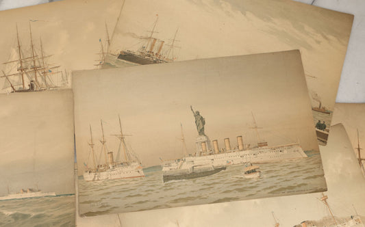 Sold For: Login to See Price Confirm BidLot 061 - Grouping Of 11 Antique Chromolithograph Prints Of U.S. Navy Battleships As Illustrate[...]