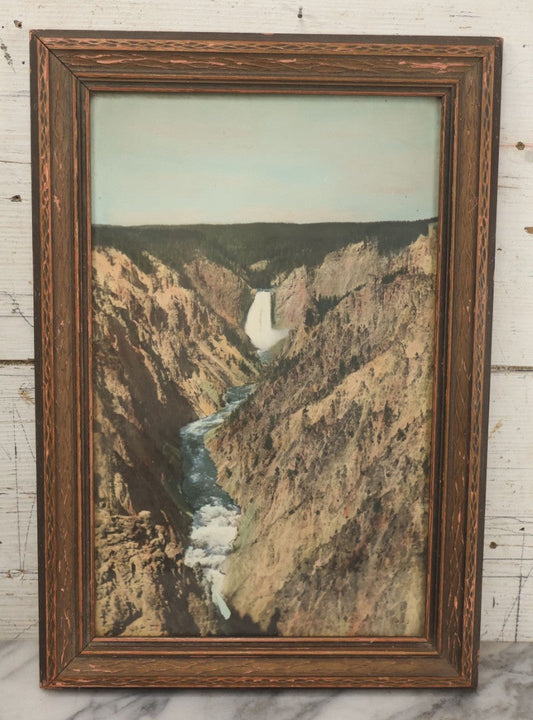 Lot 065 - Vintage Colorized Photograph Of Yellowstone Falls, Yellowstone National Park, Wyoming, In Frame, 12-1/4" x 17-5/8"