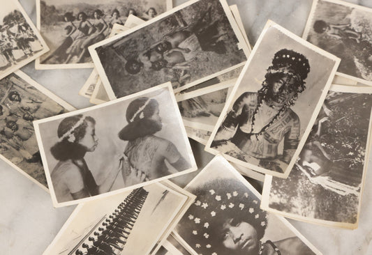 Lot 070 - Grouping Of 26 Vintage Black And White Photographs Of Indigenous Peoples Including Image Of Tattooed Woman And Image Of Tattoo Artist In Practice