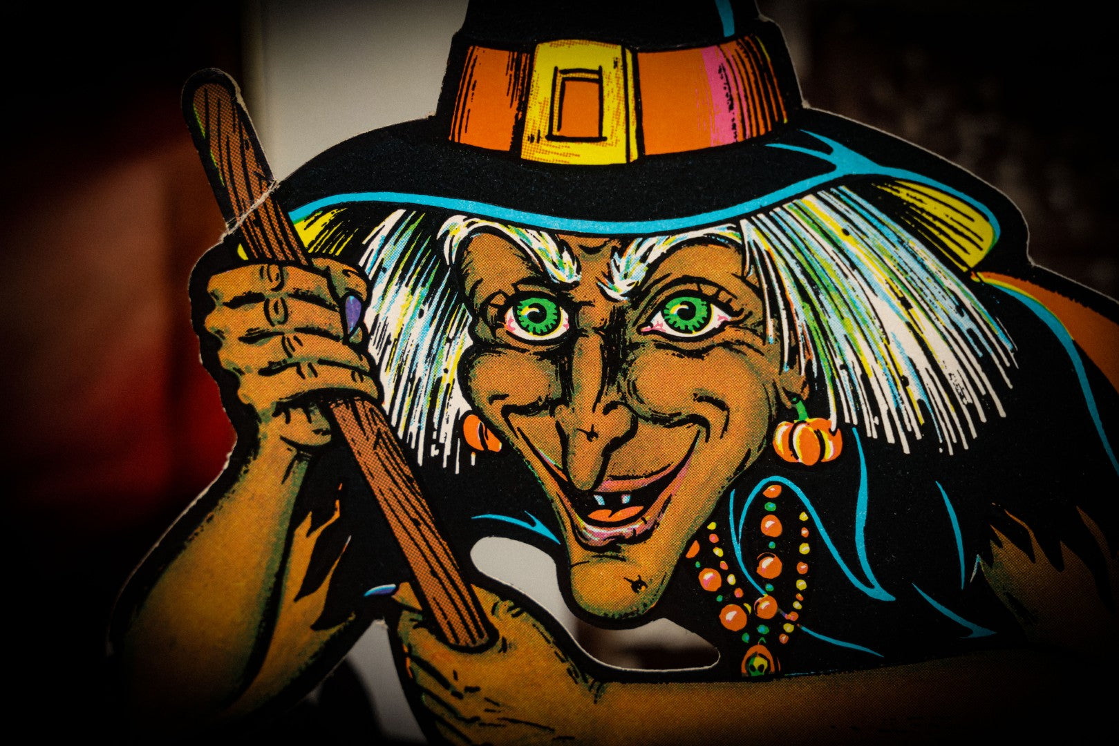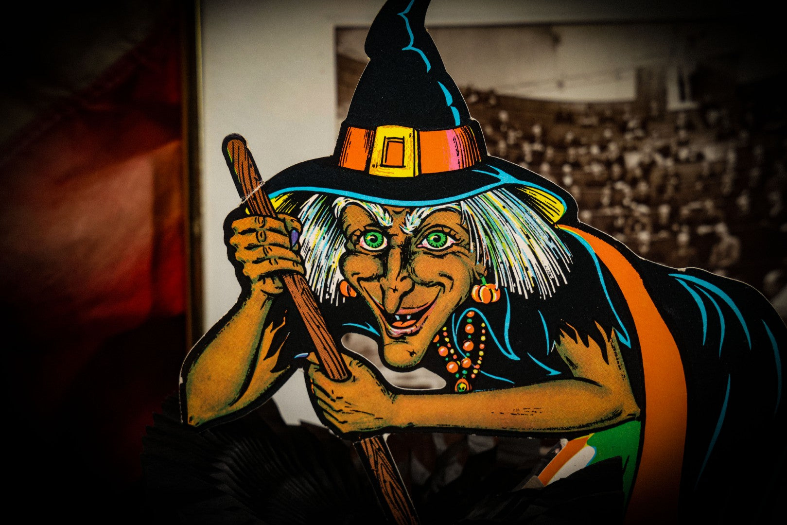 Lot 017 - Vintage Die Cut Witch Halloween Decoration With Witch Stirring Fold Out Honeycomb Paper Cauldron, Copyright Beistle Co., Made In U.S.A.