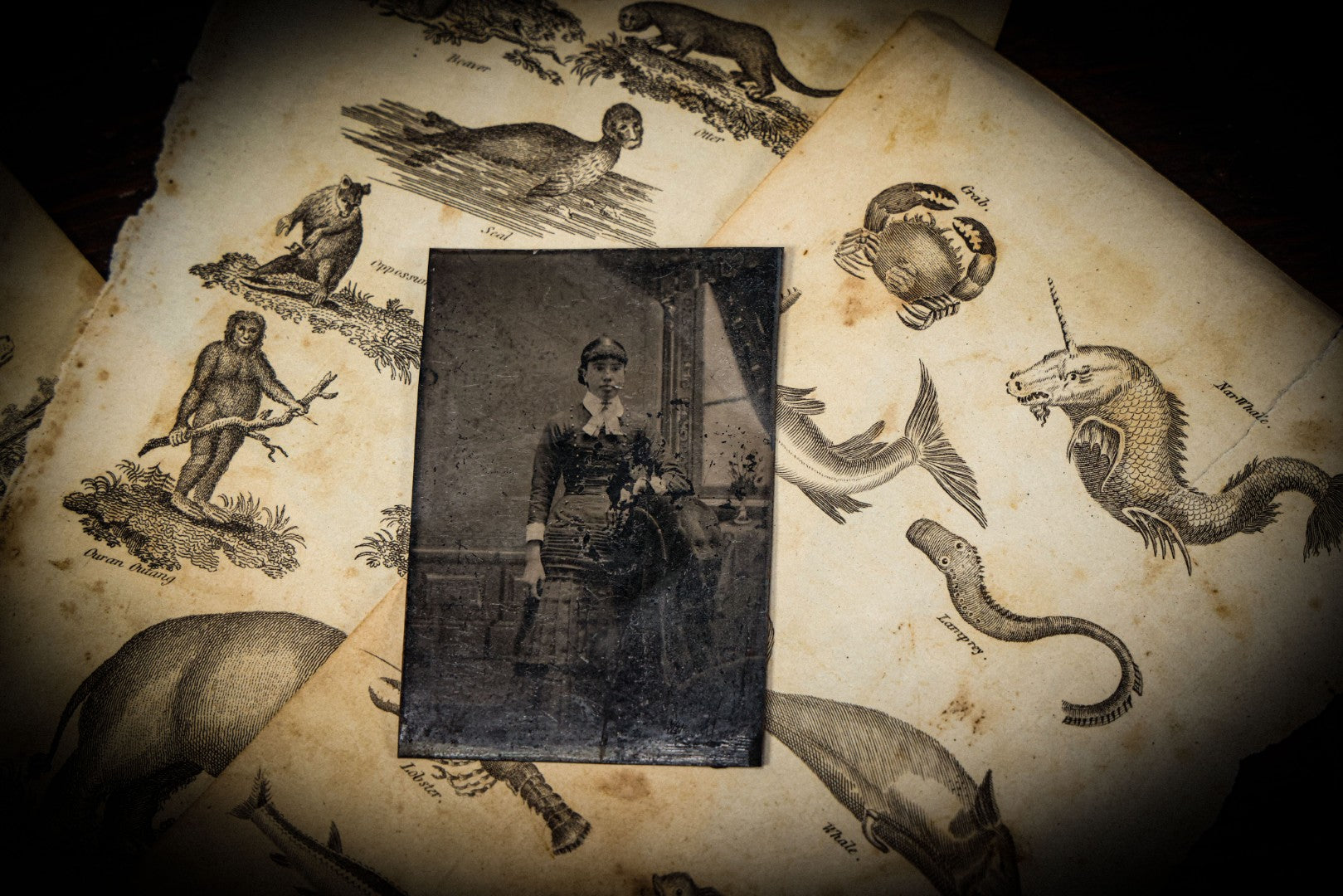 Lot 044 - Grouping Of Eight Early 19th Century Natural History Animal Engraving Book Plates With Primitive Depictions Of Various Animals Including Narwal And Other Sea Creatures, Primates, Dogs, Birds, And More