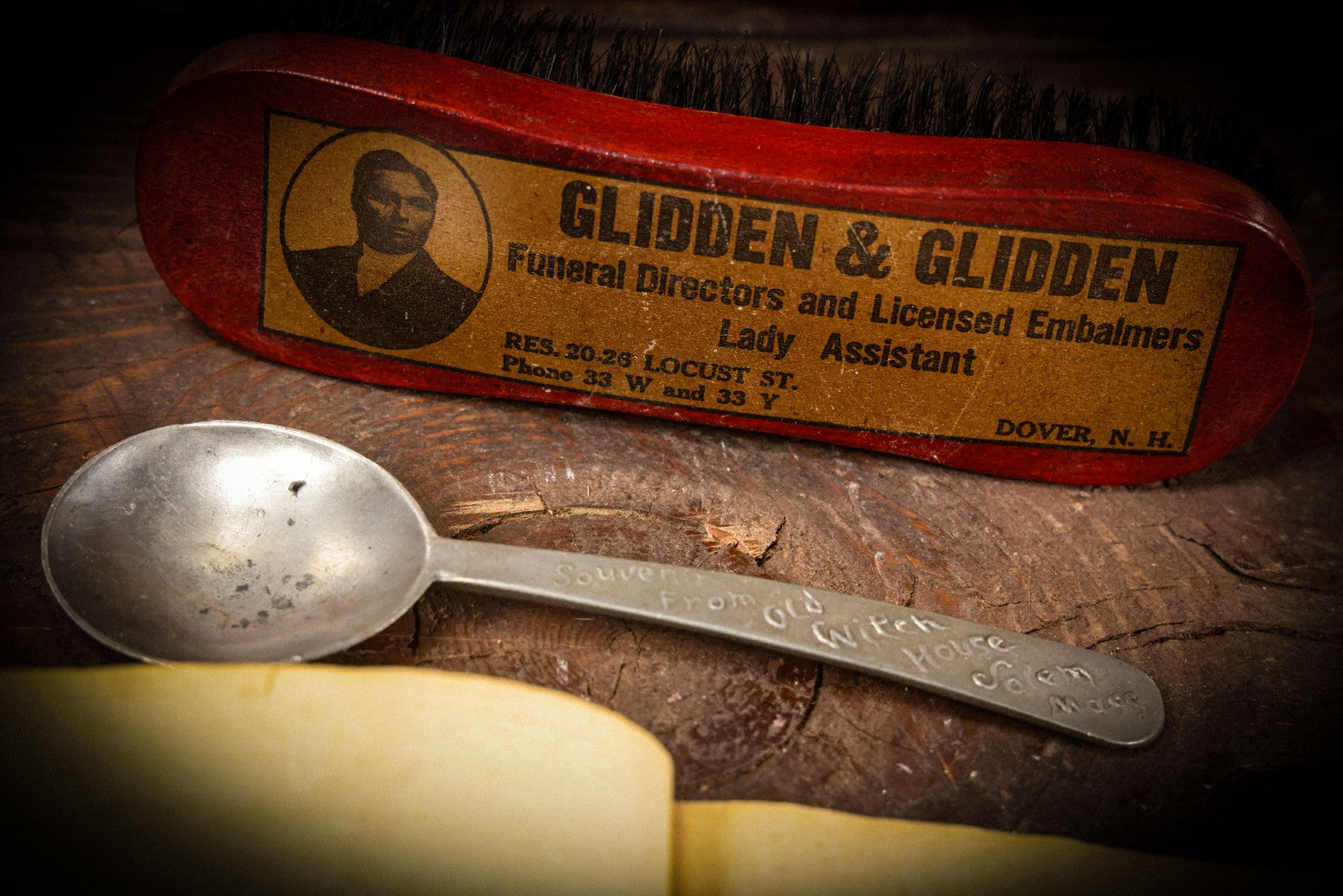 Lot 015 - Vintage Advertising Brush For "Glidden & Glidden, Funeral Directors And Licensed Embalmers, Lady Assistant" Dover, New Hampshire