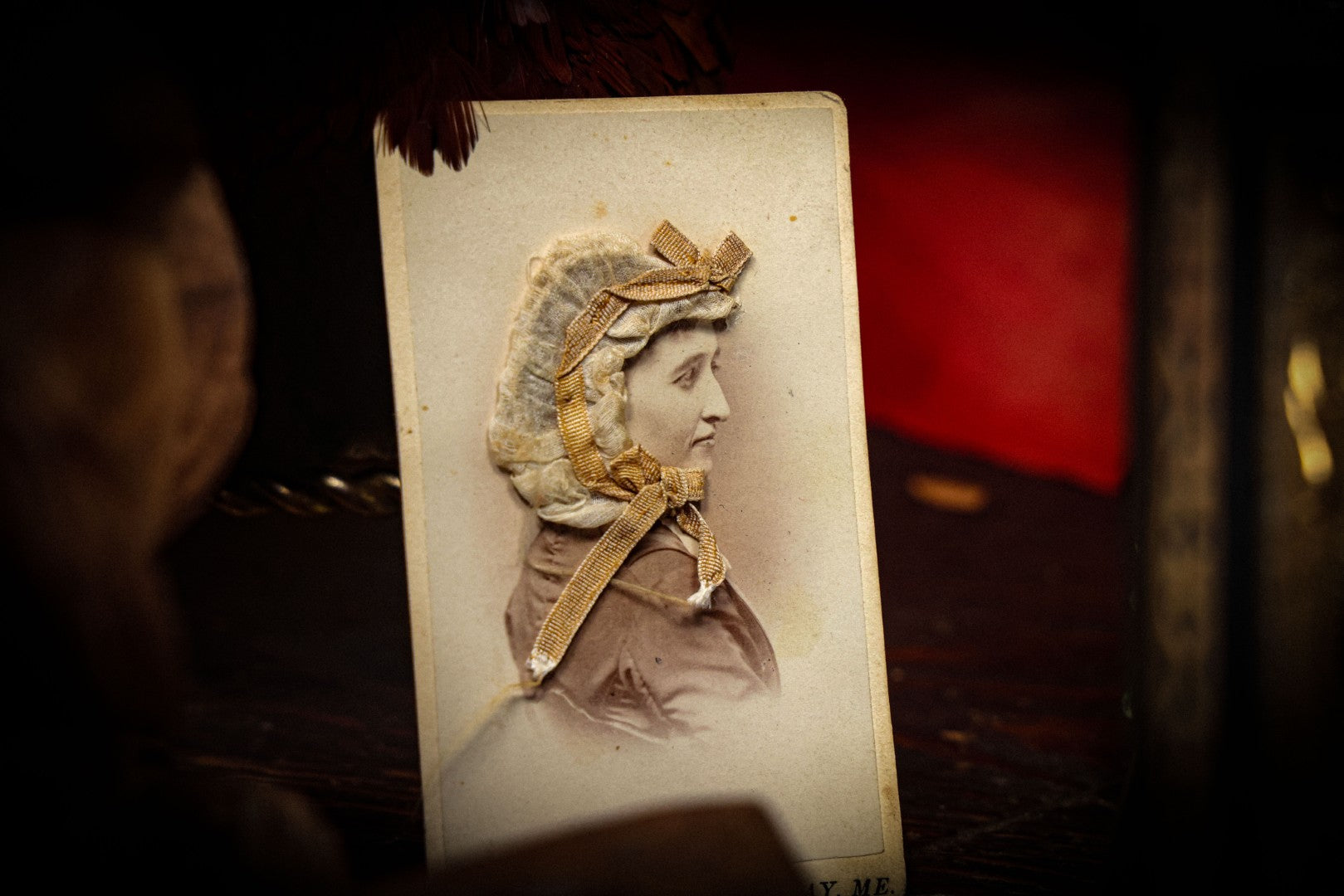 Lot 074 - Antique Carte De Visite C.D.V. Portrait Photograph Of Woman With Handmade Applied Folk Art Textile Bonnet Decoration, Burnham, Photographer, Norway, Maine