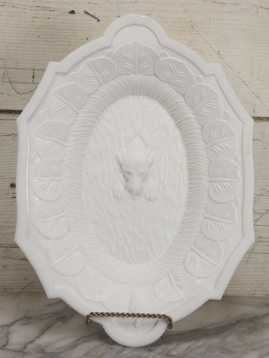 Lot 008 - Antique Milkglass Bread Platter With Figural Swimming Dog Hunting Duck Surrounded By Lily Pads, Three Dimensional Scene, Manufactured By Atterbury & Co., Note Minor Chips And Imperfections