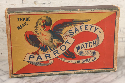 Lot 023 - Vintage Jumbo Sized Outer Matchbox With Lithographed Paper Label For Parrot Safety-Match, Made In Sweden, By Jönköpings & Vulcans