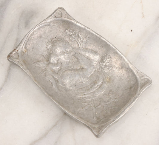 Lot 039 - Antique Cast Aluminum Art Nouveau Woman And Cherub Trinket Dish Card Tray