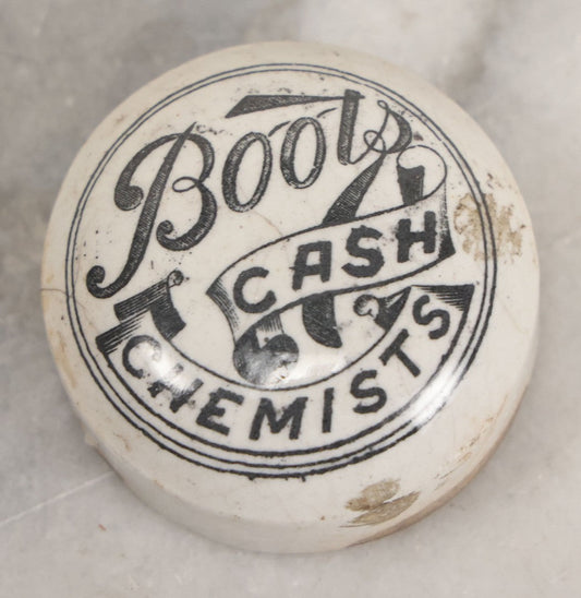 Sold For: Login to See Price Confirm BidLot 050 - Antique "Boots Cash Chemists" Decorated Stoneware Apothecary Lid