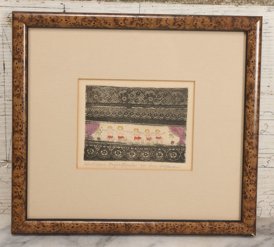 Lot 058 - Vintage Artist Proof Etching Print Of Dancing Nude Blond Women, Titled "Gentlemen Prefer Blonds" By Anna Hoogasian, In Frame, 9-1/8" W x 8-1/4" H