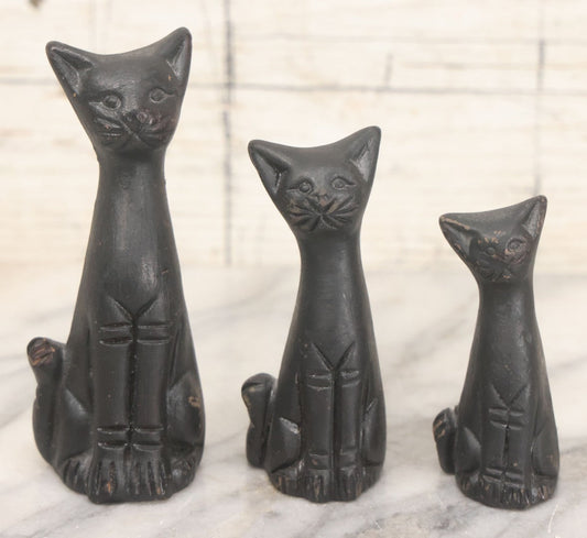 Lot 067 - Vintage Mid Century Three Piece Ceramic Black Cat Tchotchke Grouping