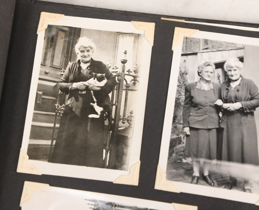 Lot 072 - Vintage Snapshot Photo Album With 80+ Photographs, Including Photos Of Europe, Naval Submarines And Battleships, Figural Topiary Sculpture Shrub Garden, Old Stone Houses, Pets And More, Many Loose Photos