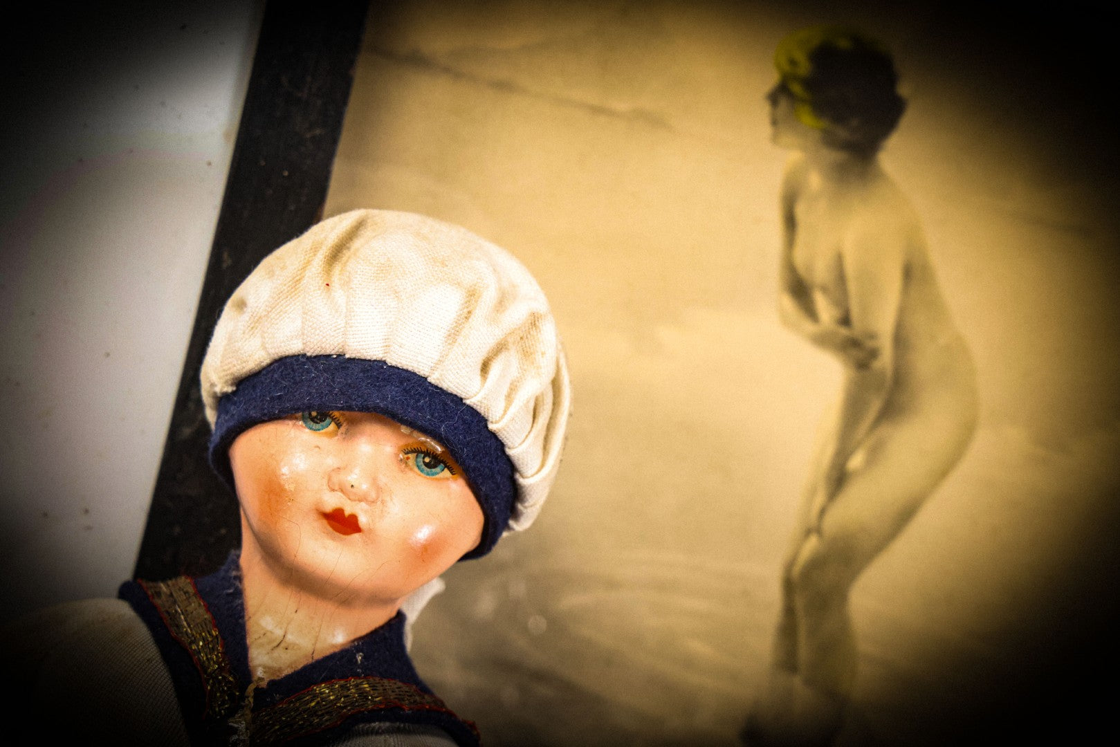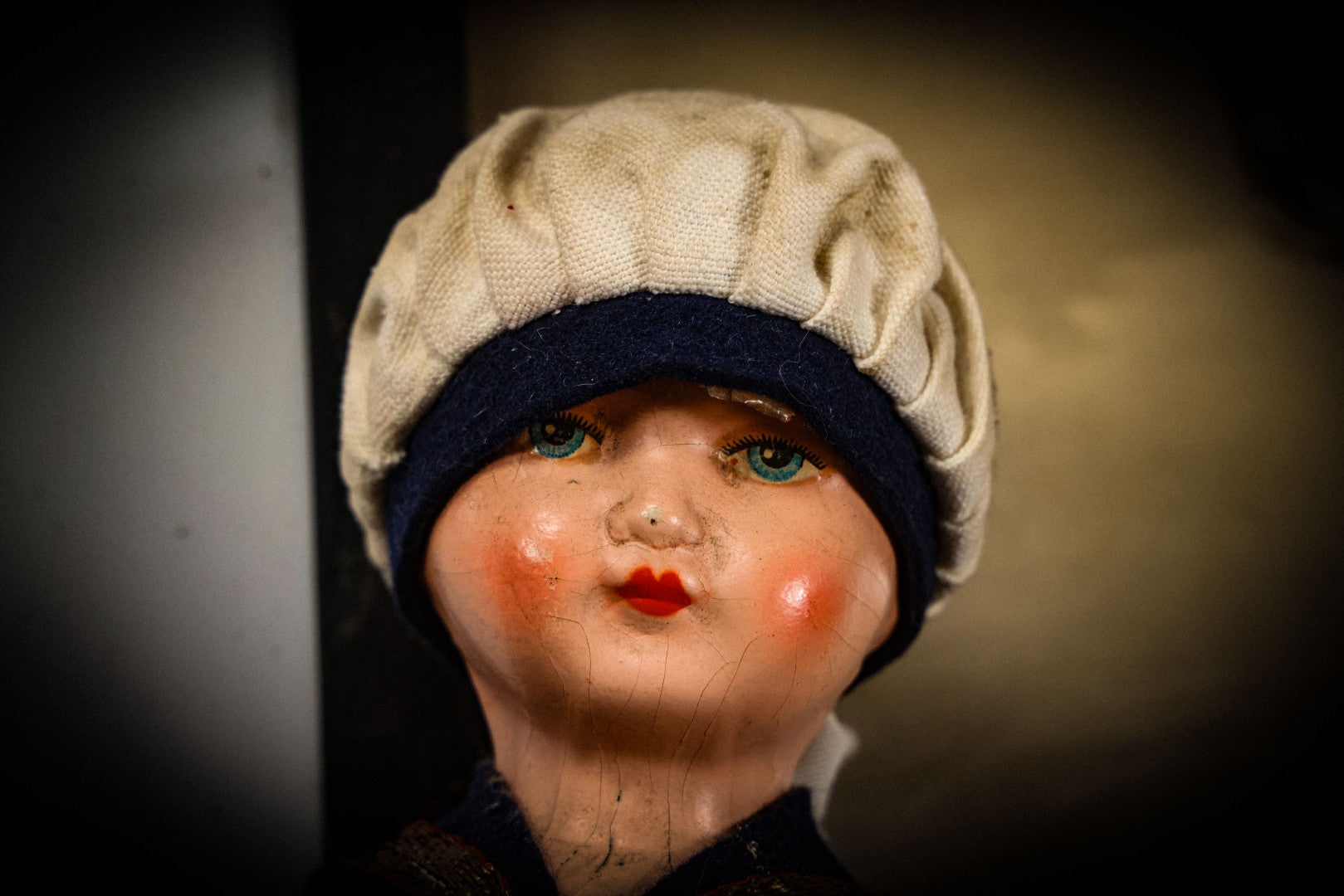 Sold For: Login to See Price Confirm BidLot 015 - Vintage Sailor Doll With Stuffed Fabric Body And Paperboard Head, Red Painted Lips An[...]