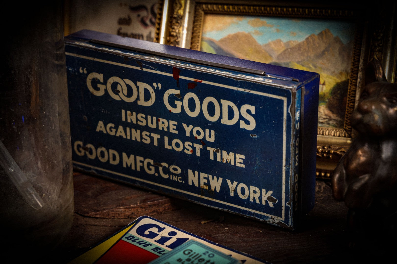 Lot 020 - Vintage "Good" Goods Divided Advertising Tin, "Insure You Against Lost Time," Good Manufacturing Co. Inc., New York