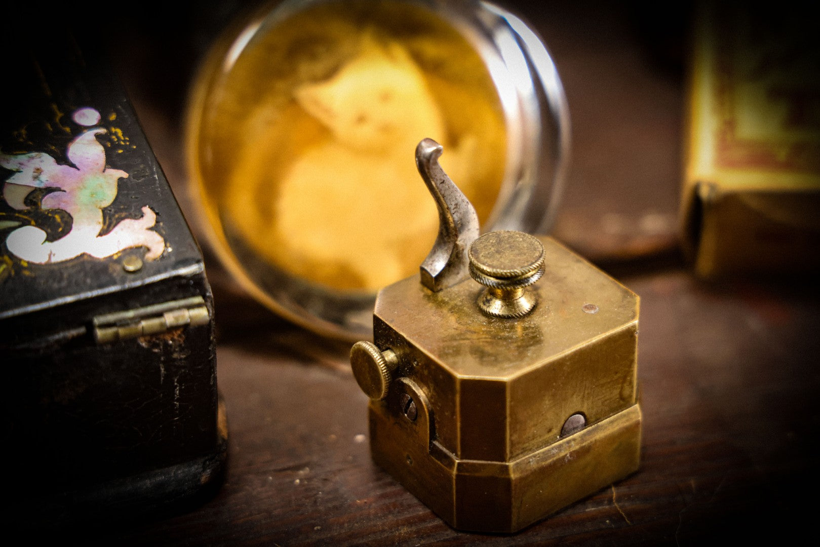 Lot 006 - Antique Brass Spring Loaded Bloodletting Fleam, Medical Device, With Partial Original Box