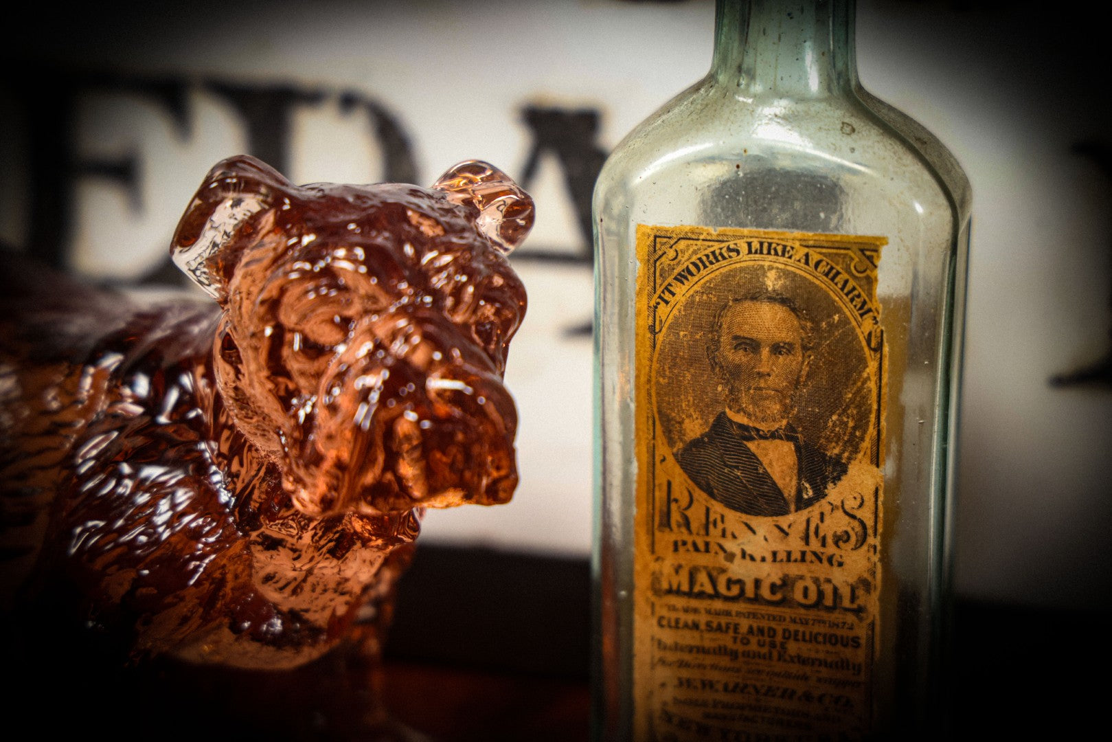 Lot 013 - Antique Bottle With Embossed Text And Original Paper Labels For Renne's Pain Killing Magic Oil Patent Medicine, "It Works Like A Charm; Clean Safe And Delicious" Manufactured By T.W. Warner & Co., New York, 6" Height