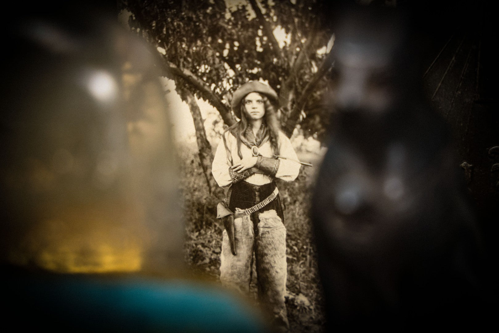 Lot 074 - Single Antique Tintype Photograph Of Two Victorian Ladies In Beachwear Posing On Real Sand Set With Painted Backdrop With Lighthouse And Ships