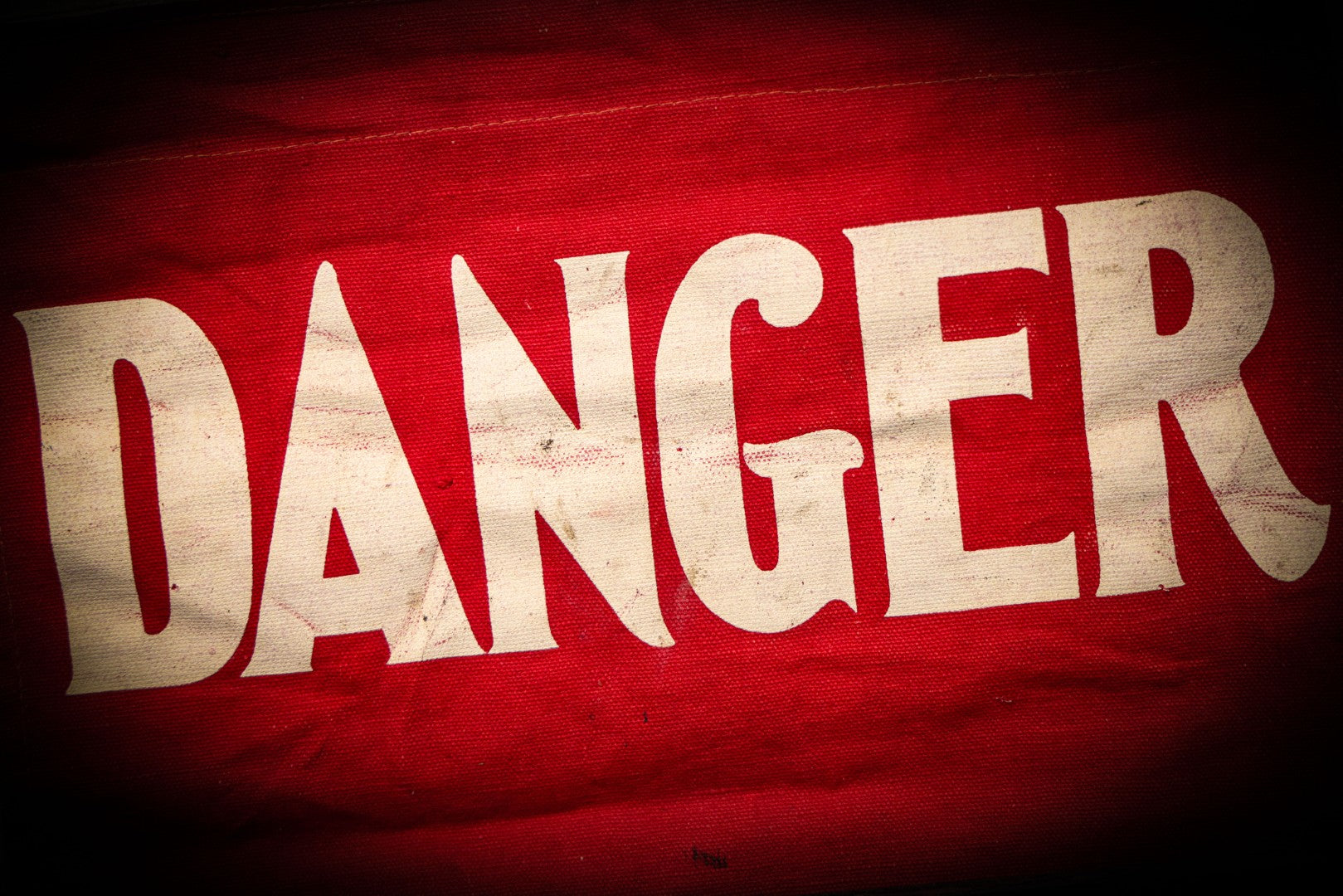 Lot 003 - Vintage Printed Red Fabric "Danger" Warning Flag Banner With Metal Wire Hanger, 13" W x 16-5/8" H