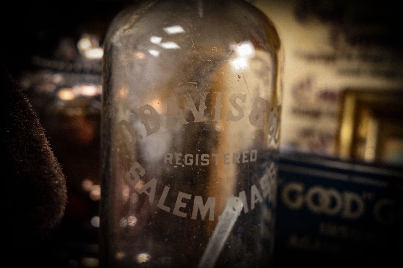 Lot 011 - Antique D. Davis & Co., Salem, Massachusetts, Glass Seltzer Soda Bottle With Matching Stamped Siphon Head