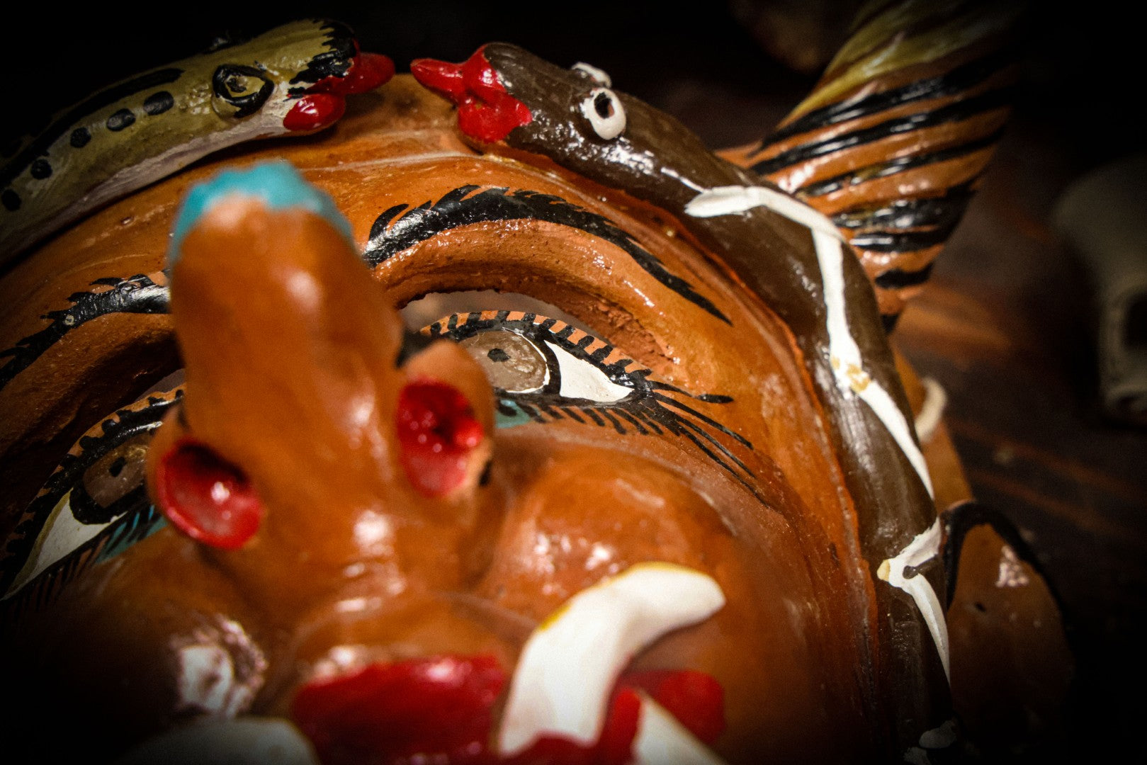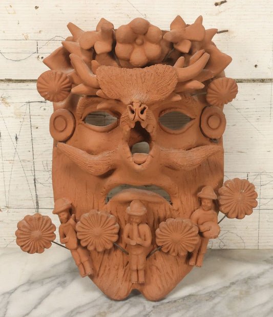 Sold For: Login to See Price Confirm BidLot 016 - Vintage Unpainted Red Clay Mexican Folk Art Mask, Made In Mexico Sticker On Verso, Wi[...]