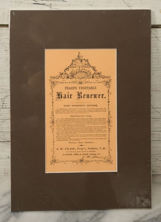 Lot 057 - Antique Pease's Vegetable Hair Renewer, Snake Oil Medicine Directions Insert, J.W. Pease Proprietor, Nashua, New Hampshire, Matted And Shrink Wrapped