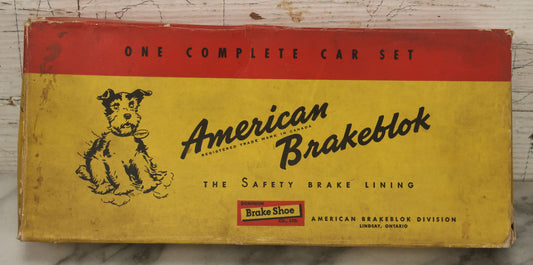 Lot 069 - Vintage American Brakeblok Safety Brake Lining Advertising Box With Stopper The Dog Mascot By Dominion Brake Shoe Company, Lindsay, Ontario, Canada, Circa 1946
