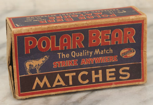 Lot 070 - Vintage Polar Bear Quality Strike Anywhere Matches Advertising Box By Griffin Grocery Co. Of Oklahoma, Texas And Arkansas, Box Empty