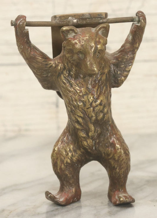 Sold For: Login to See Price Confirm BidLot 076 - Vintage Solid Brass Brown Bear Door Knocker With Remnants Of Old Paint And Tapered Mo[...]