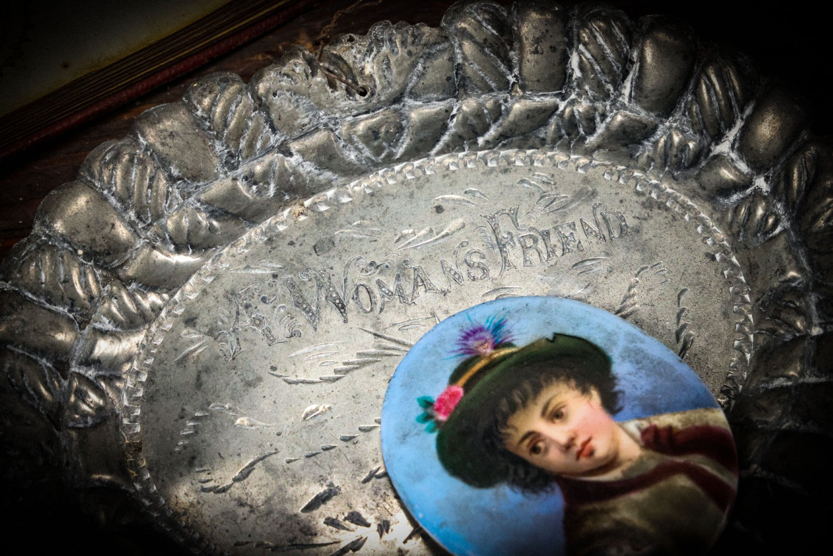 Sold For: Login to See Price Confirm BidLot 019 - Antique Miniature Hand Painted Porcelain Cameo Tile With Child In Green Hat With Flow[...]