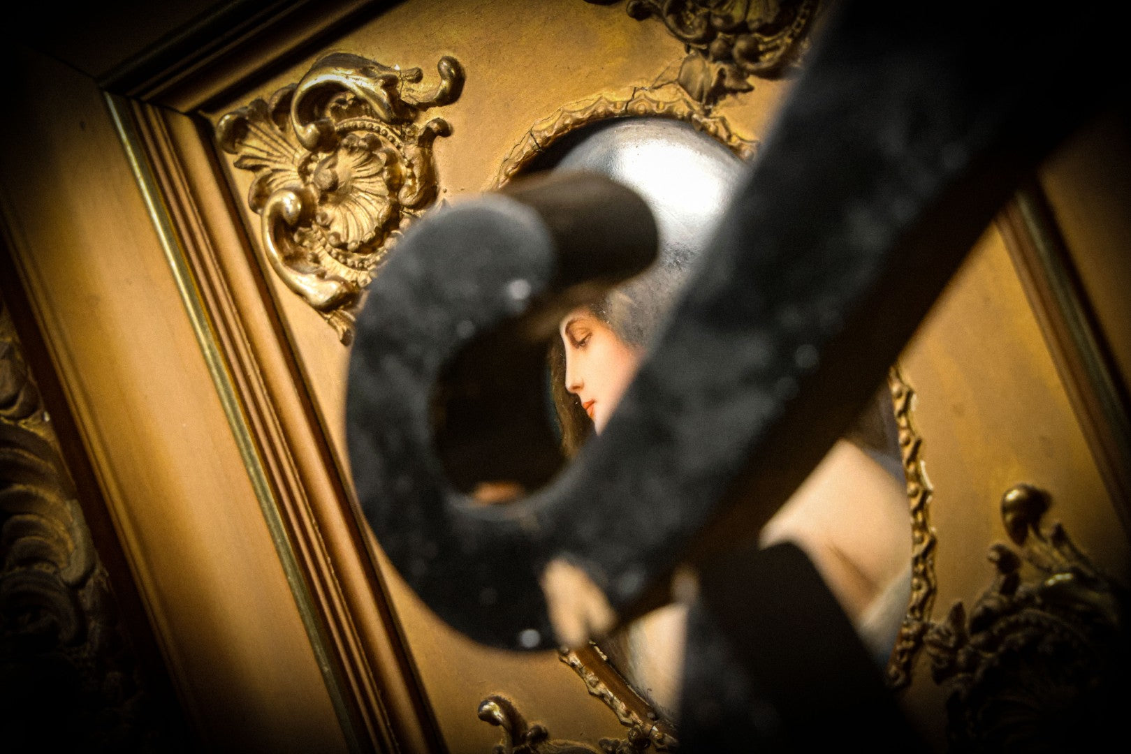 Sold For: Login to See Price Confirm BidLot 048 - Antique Cast Iron Stove Cleanout Door With Three Dimensional Lion Face, Gold Paint, 1[...]