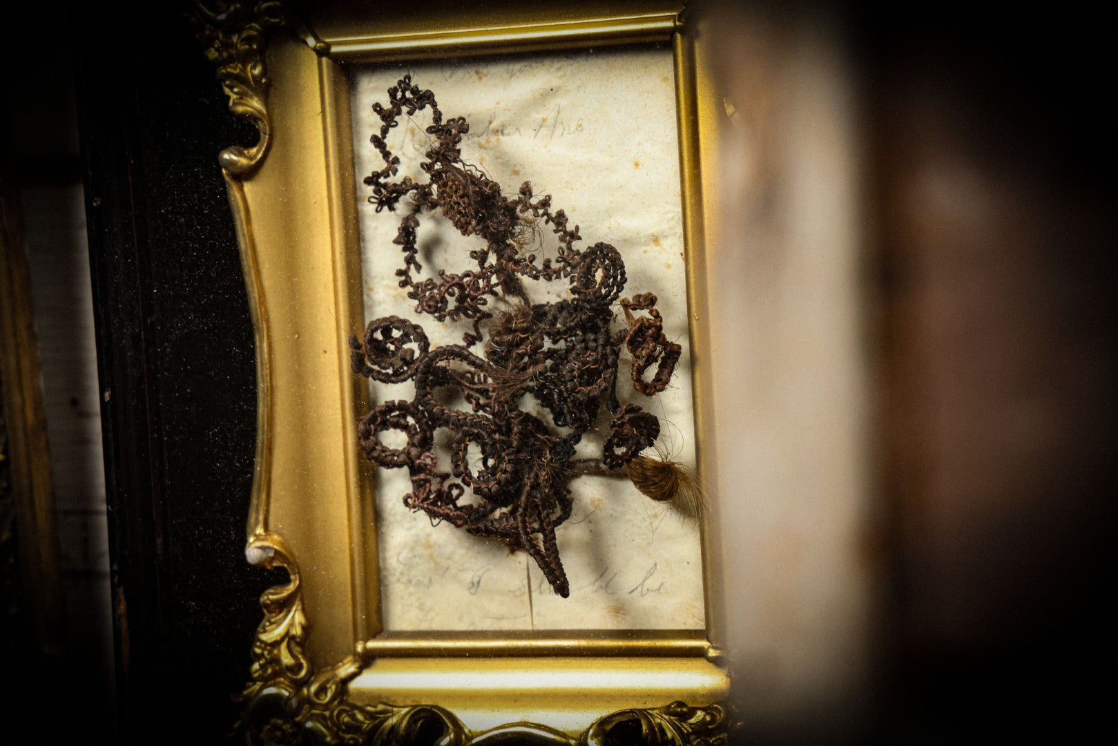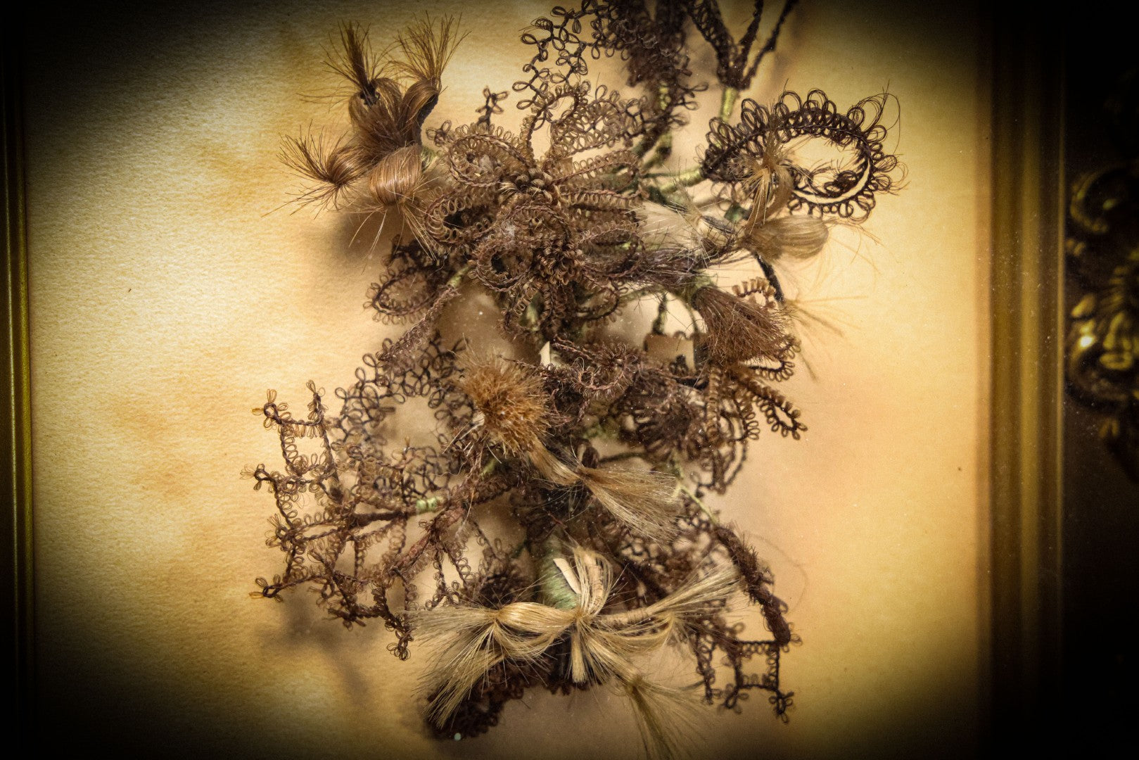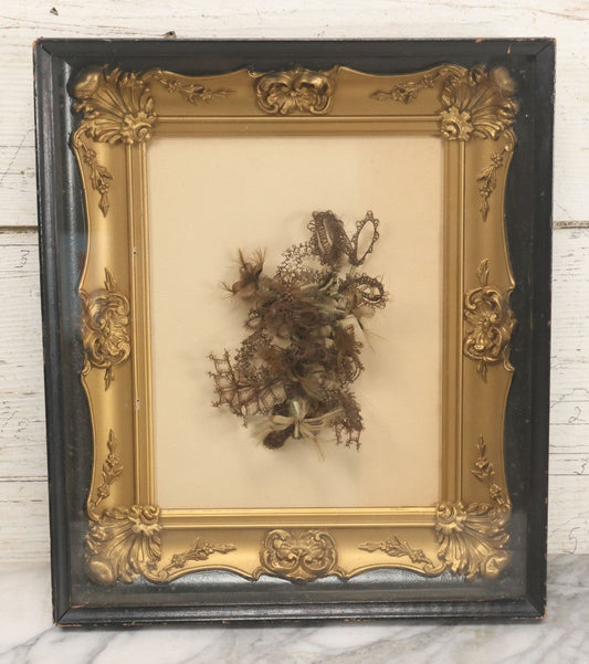 Sold For: Login to See Price Confirm BidLot 006 - Antique Victorian Hair Work Flower In Double Frame Shadow Box With Brown Hair, Note N[...]