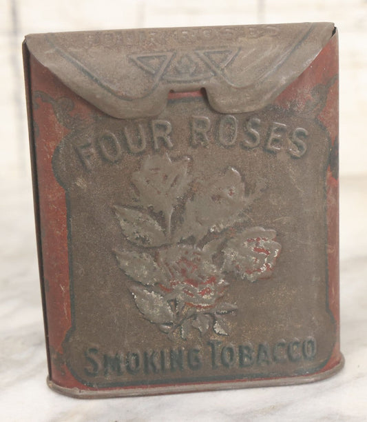 Lot 017 - Vintage Pressed Tin Four Roses Smoking Tobacco Pocket Box With Remnants Of Original Paint
