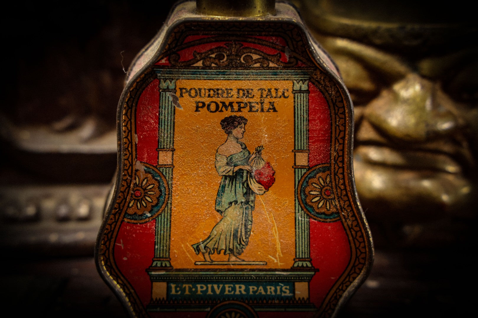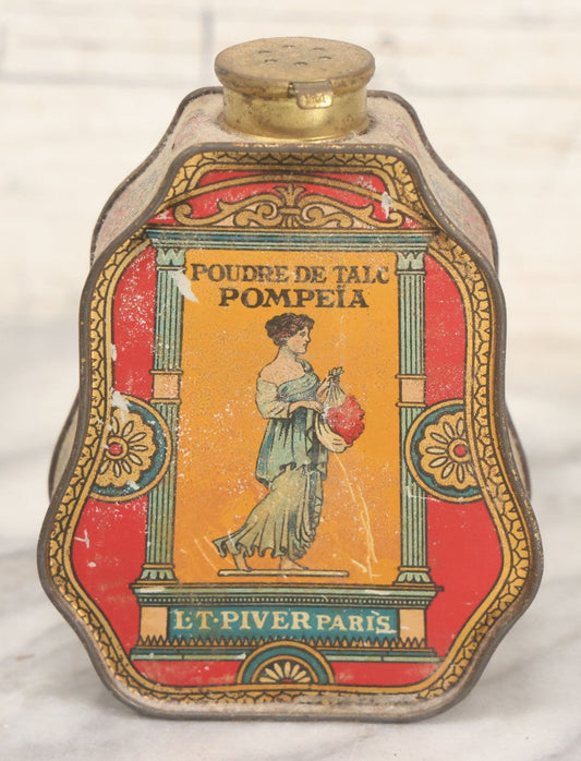 Lot 019 - Vintage Tin Lithograph "Poudre De Talc Pompeia" Talc Powder Tin By L.T. Piver, Paris, Made In France, Packed In The United States, Patented January 11, 1921