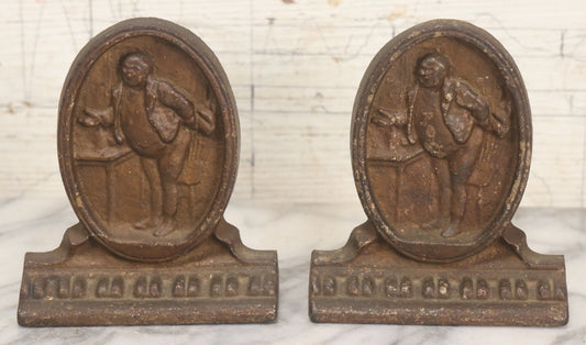 Lot 020 - Antique Cast Iron Bookends Featuring Portly Business Man In Suit With Handout