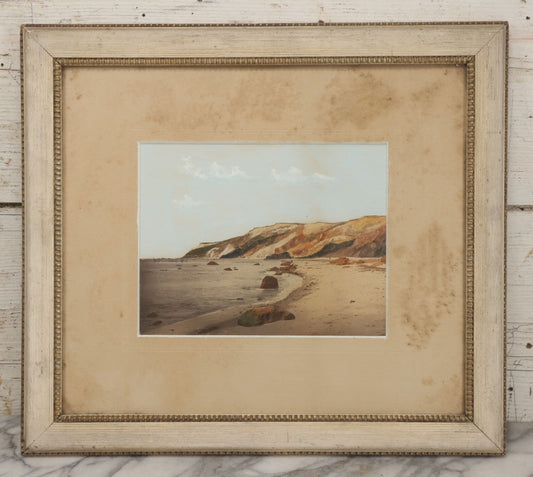 Lot 033 - Antique Painted Over Photograph Of Oceanside Cliffs And Beach With Child Seated On Rocks Likely Gay Head Cliffs, Martha's Vineyard, Massachusetts, In Original Frame, 17-1/2" x 15-1/2"